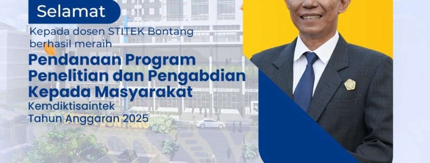Selamat dan Sukses kepada dosen STITEK Bontang yang berhasil meraih pendanaan Program Penelitian dan Pengabdian kepada Masyarakat Tahun Anggaran 2025 dari Kementerian Pendidikan, Kebudayaan, Riset, dan Teknologi RI.